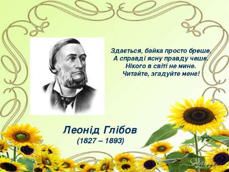 Розквіт жанру байкарства в українській літературі пов'язують із іменем Леоніда Івановича Глібова. Це ім’я відоме кожному українцеві. Воно стоїть в одному ряду із іменами відомих у всьому світі: Езопа, Лафонтена, Крилова. Саме як байкар Глібов здобув широке визнання в українській літературі. Він виставляв на посміховисько одвічні суспільні біди, надаючи їм українського забарвлення. Жива, багата мова, легкість діалогів та дотепність байок зробили їх популярними серед дітей і дорослих.