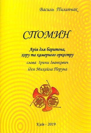 Пилипчак В. Спомин: арія для баритона, хору та камерного оркестру, слова Ірини Іванкович, ідея Михайла Перуна / Василь Пилипчак. – Київ : Пилипчак В. Г., 2019. – 19 с.