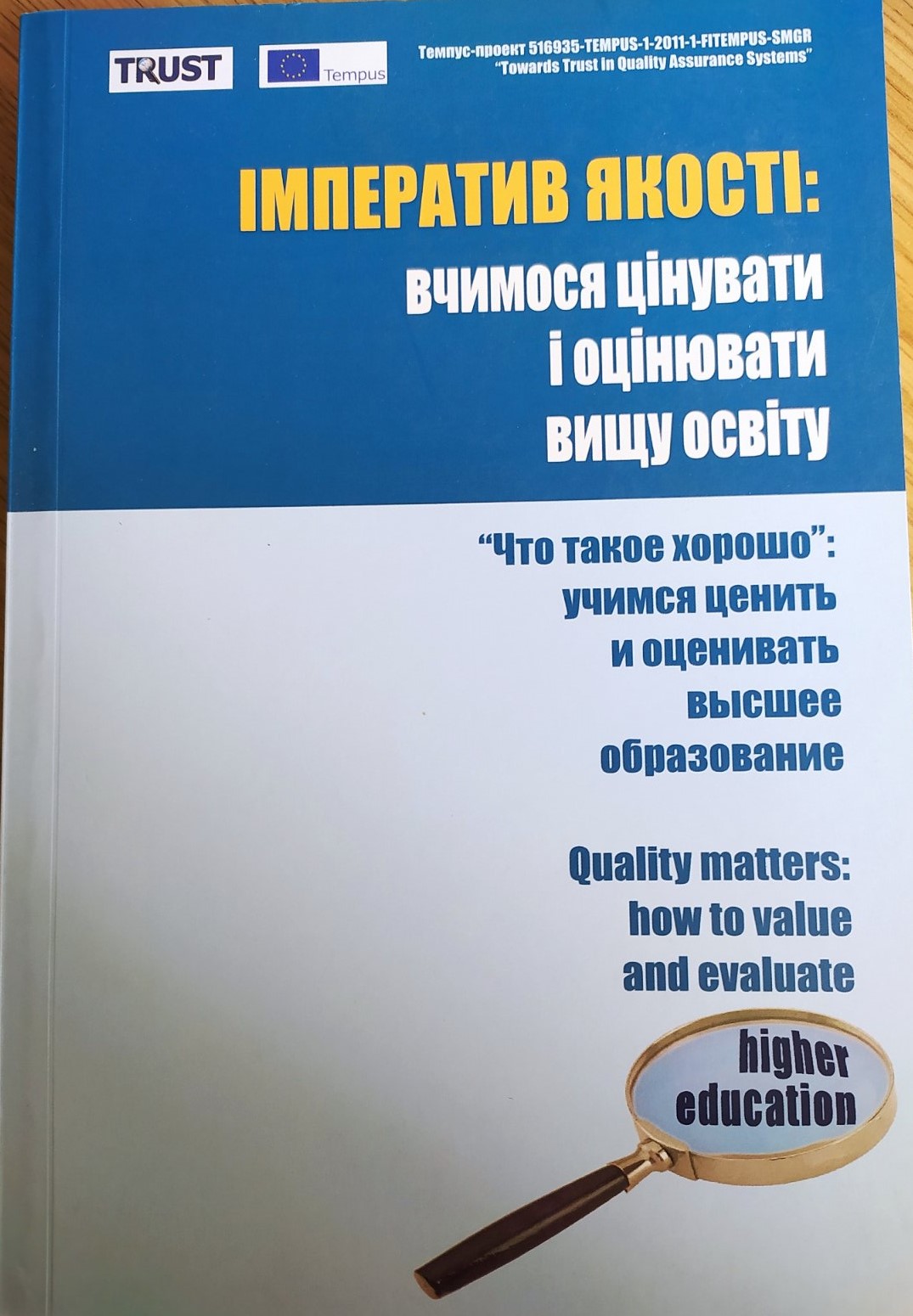 Імператив якості: вчимося цінувати і оцінювати вищу освіту : навч. посіб. / За ред. Т. Добка, М. Головянко, О. Кайкової, В. Терзіяна, Т. Тіхонена. – Львів : Манускрипт, 2014. – 572 с.