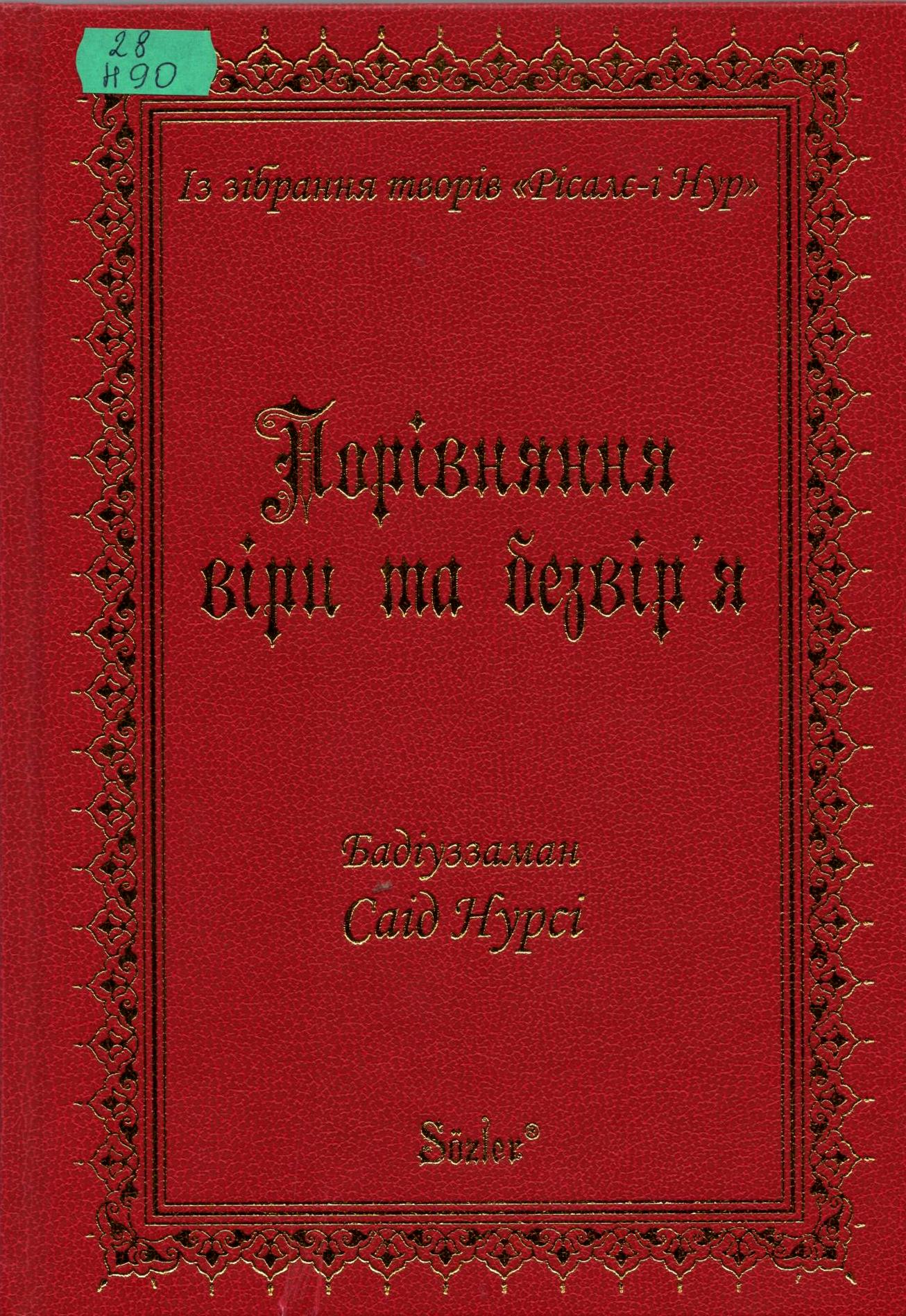 Нурсі С. Порівняння віри та безвір’я : із зібрання творів "Рісале-і Нур" / Бадіуззаман Саїд Нурсі. – Istanbul : Sozler, [б. р.]. – 216 с.