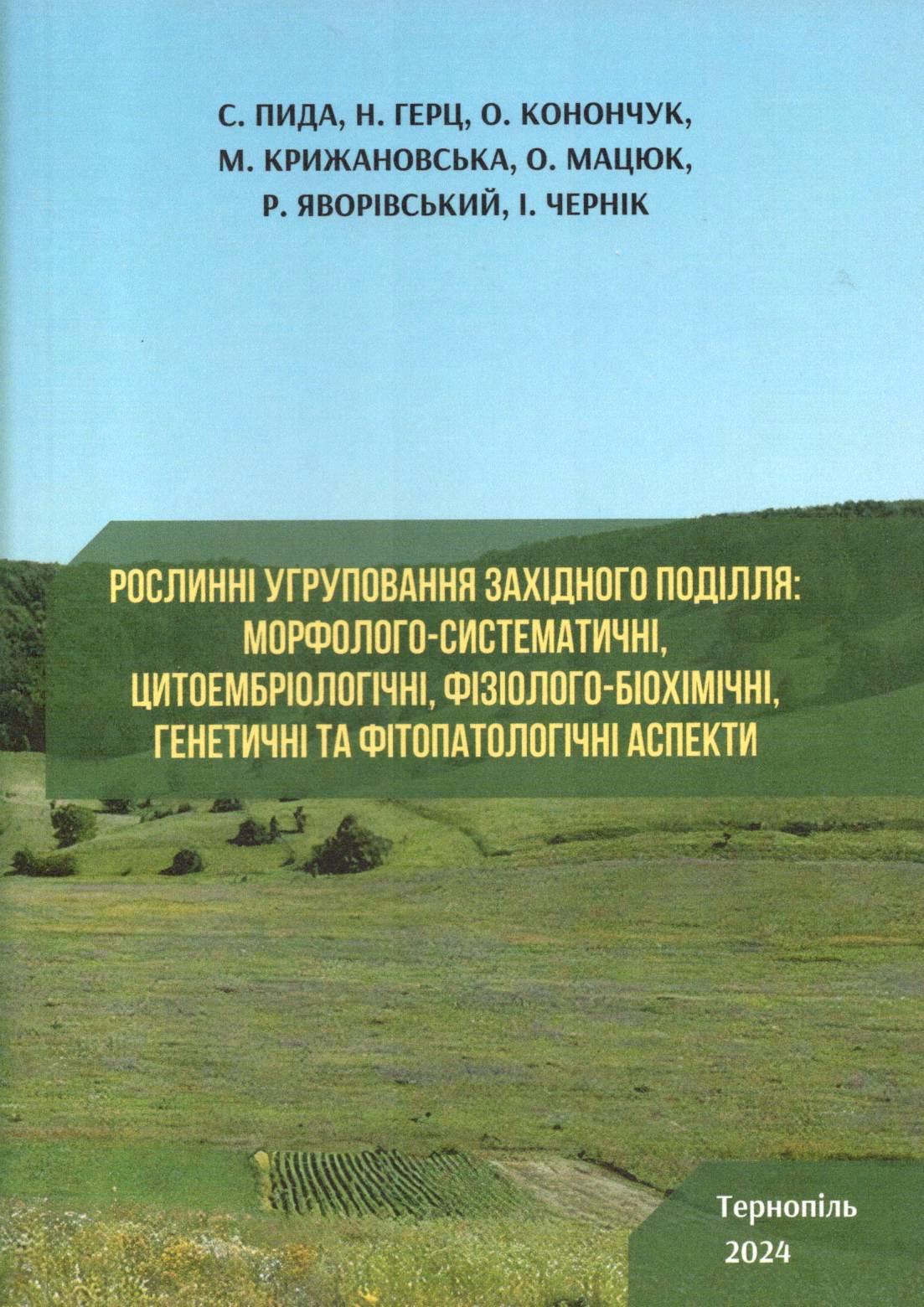 Рослинні угруповання Західного Поділля : морфолого-систематичні, цитоембріологічні, фізіолого-біохімічні, генетичні та фітопатологічні аспекти [Текст] : монографія / С. Пида, Н. Герц, О. Конончук [та ін.]. – Тернопіль : [б. в.], 2024. – 232 с. – (1 прим.) |