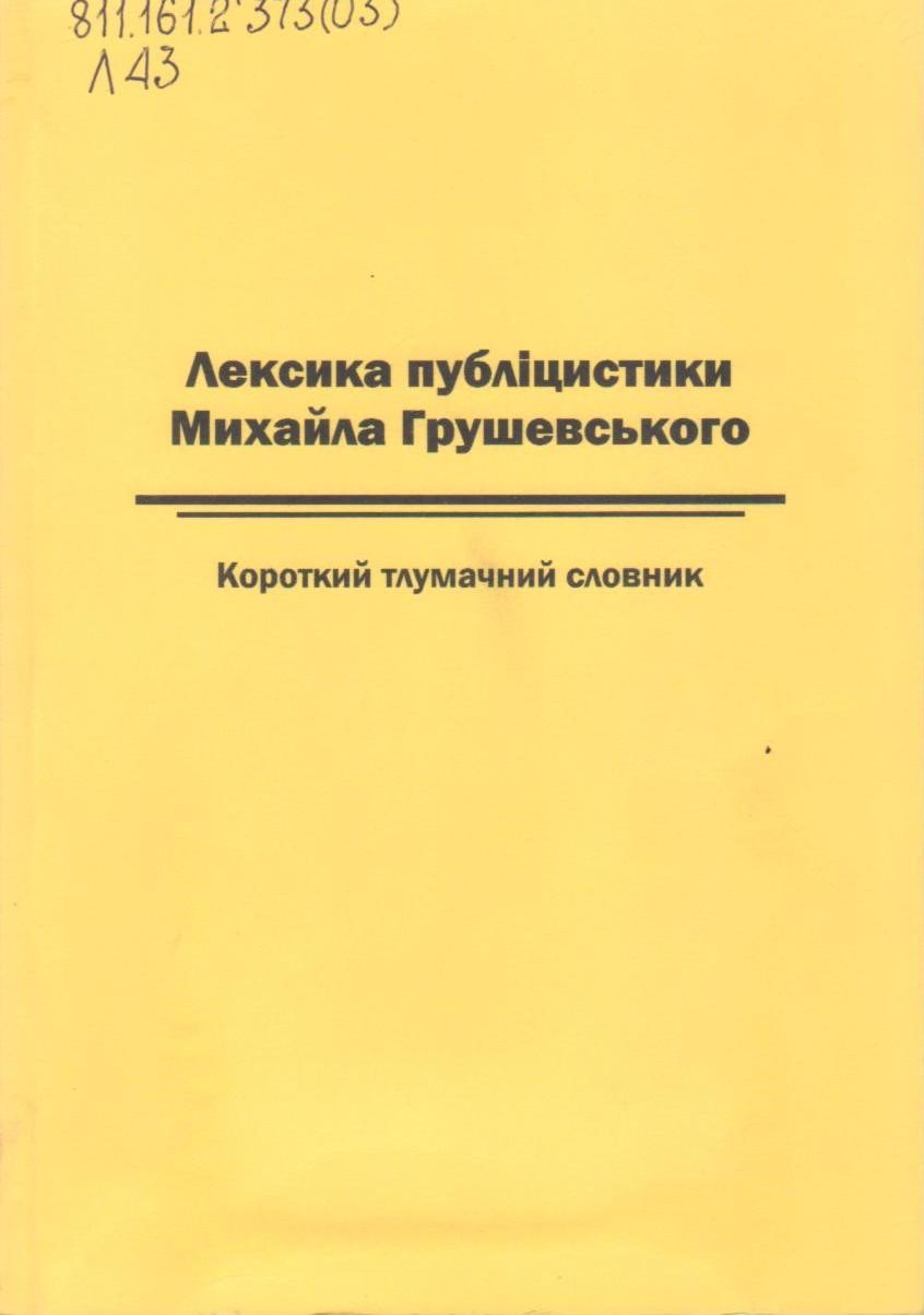 Лексика публіцистики Михайла Грушевського : короткий тлумачний словник / уклад. Г. П. Клімчук. – Кривий Ріг : КДПУ, 2010. – 107 с.