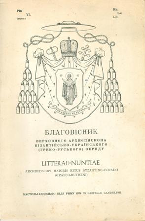 Благовісник Верховного Архиєпископа візантійсько-українського (греко-руського) обряду = Litterae-Nuntiae Archiepiscopi Maioris Ritus Byzantino-Ucraini (Graeco-Rutheni). Рік VI. Кн.1-4 / відп. ред. І. Хома. – Кастельґандольфо : [б.в.] 1970. – 88 с. |